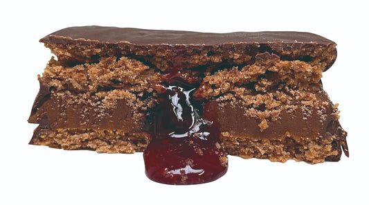 Alfajor con Doble Relleno de DDL y Corazón de Frutos Rojos - Caja x8 Unidades